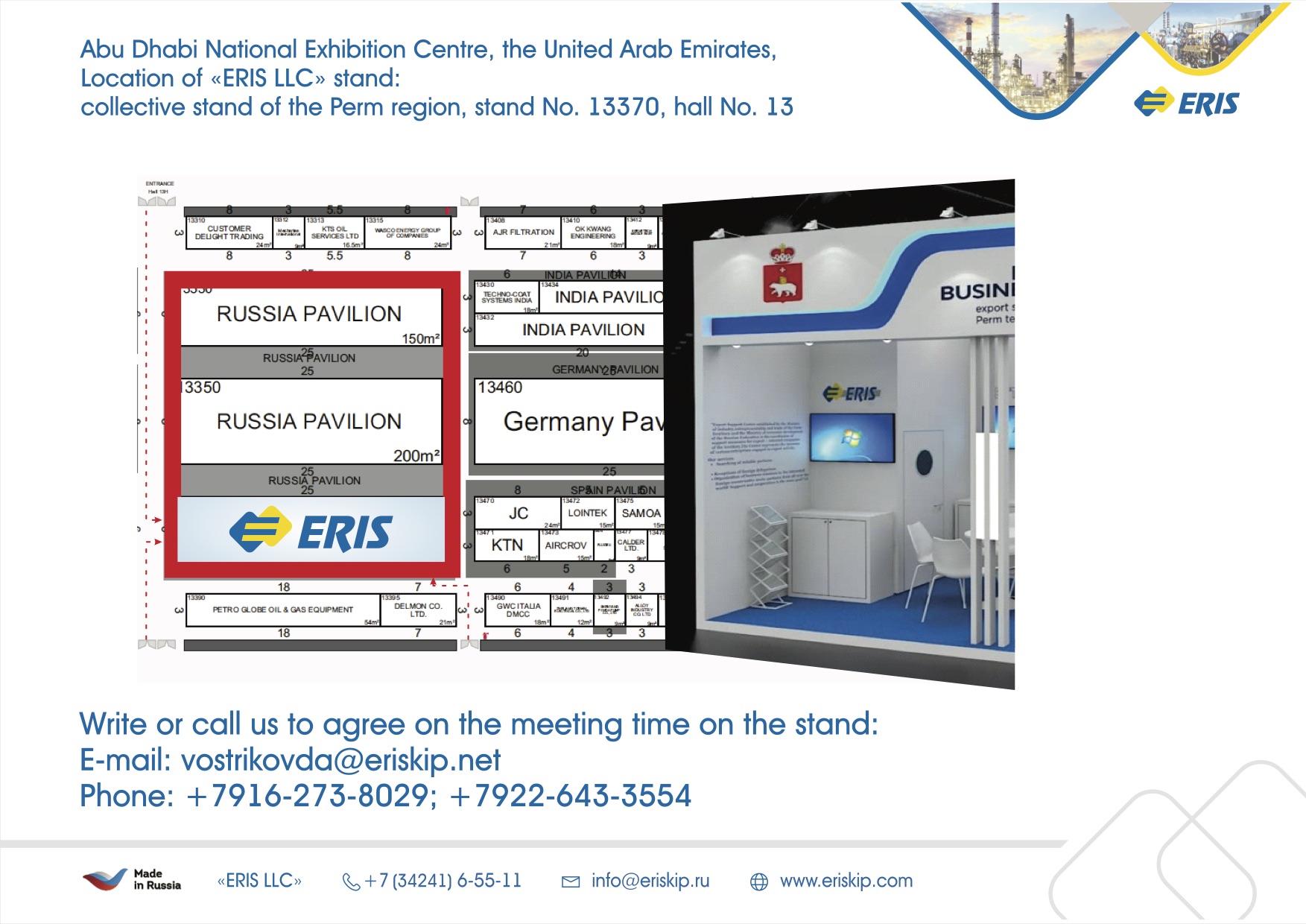 ADIPEC 2019 will take place on 11–14 November 2019 in the Abu Dhabi National Exhibition Centre (UAE). ERIS LLC will demonstrate its products on the collective stand of the Perm region.