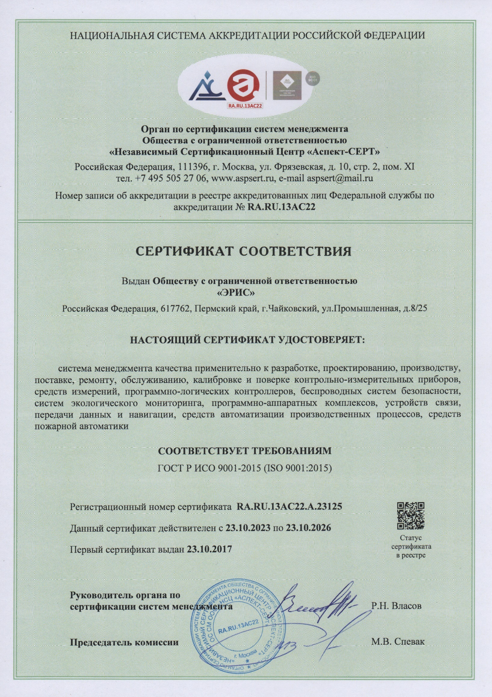 Компания "ЭРИС" завершила процедуру сертификации системы менеджмента качества в соответствии с ГОСТ Р ИСО 9001-2015. Данный сертификат был выдан национальной системой аккредитации Российской Федерации и свидетельствует о постоянной преданности высоким стандартам качества и стремлении к непрерывному улучшению бизнес-процессов в компании.